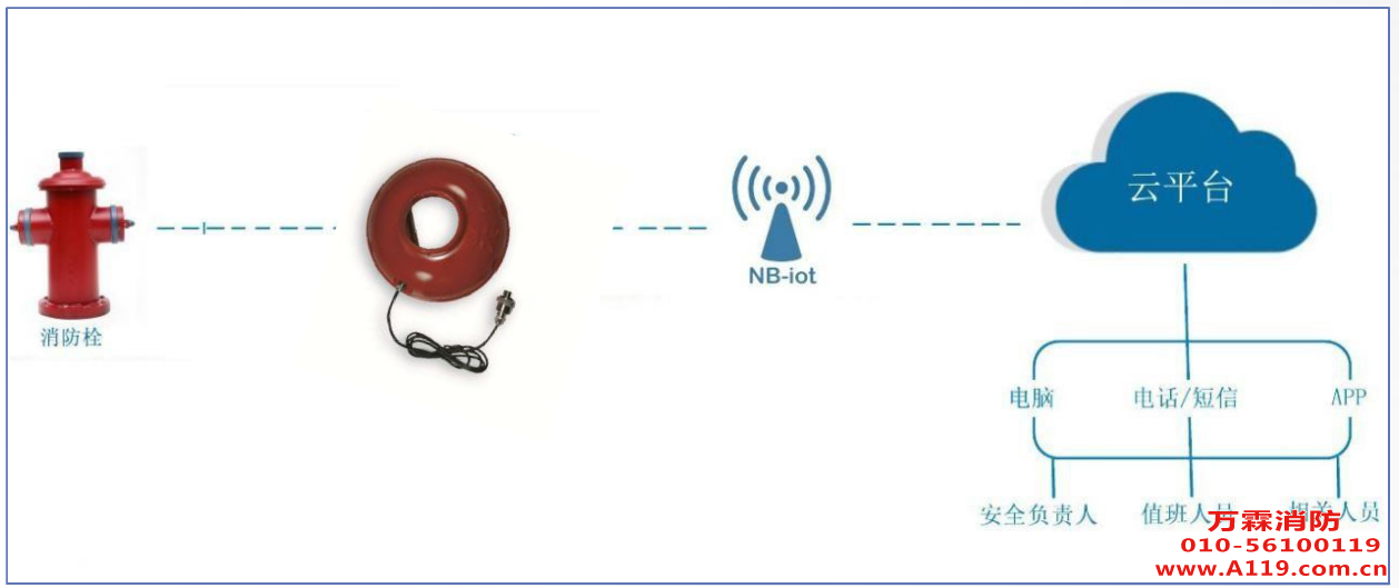 通过 NB-IOT 网络将现场采集 信息上传至地方政府消防