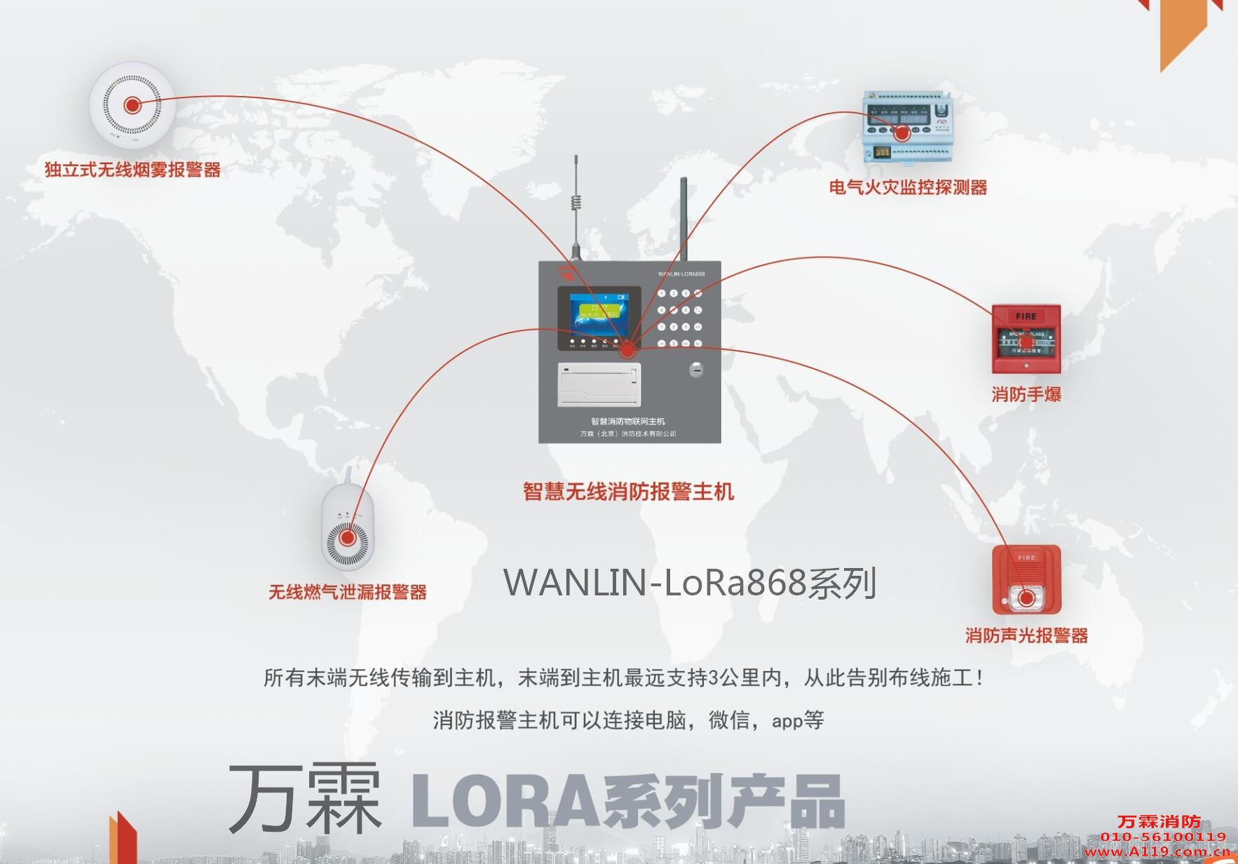 WANLIN-LoRa868智慧消防无线消防报警主机系统