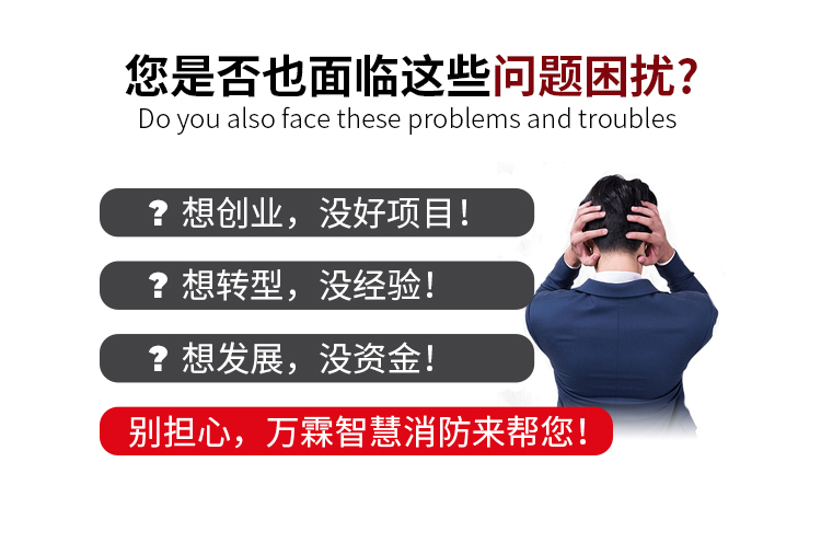 万霖开启智慧消防全国合伙人模式,不仅提供从产品研发、展厅设计,到市场宣传、团队管理、运营服务等全程扶持,而且还是0元合作,帮您解决资金压力的困扰。