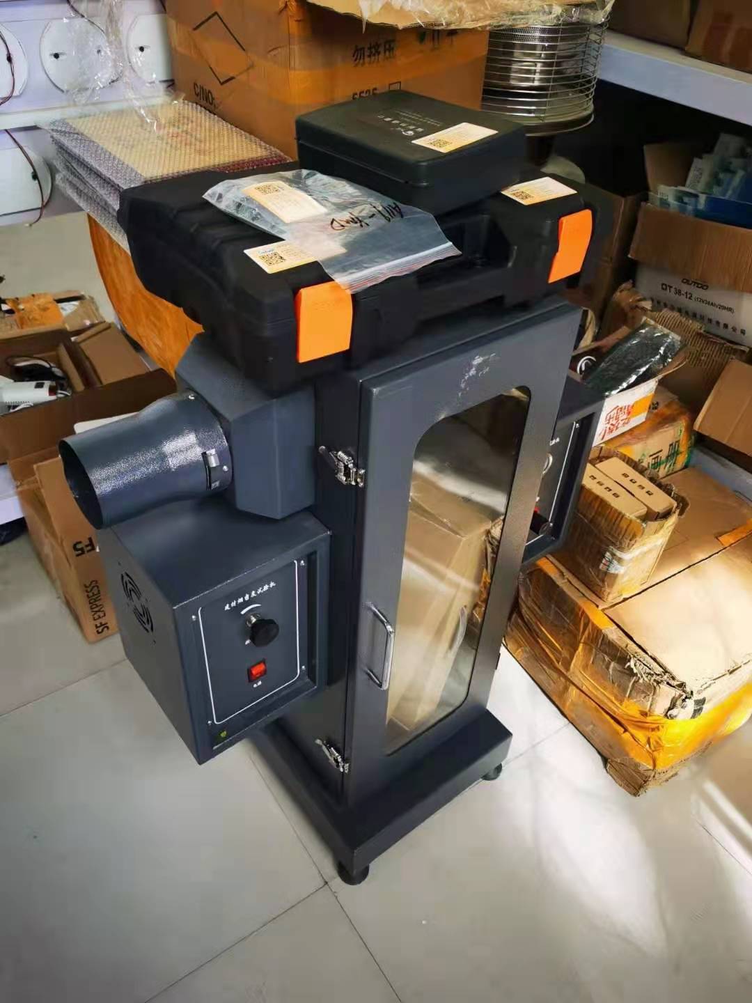 5.燃烧灯:为本生灯,长度260mm,喷嘴直径0.13mm,与烟箱成45°角;台1 6辐射热通量计量程:0~10kW/m2,分辨率:0.01 kW/m2,标定精度:±5%,功耗:30Mw