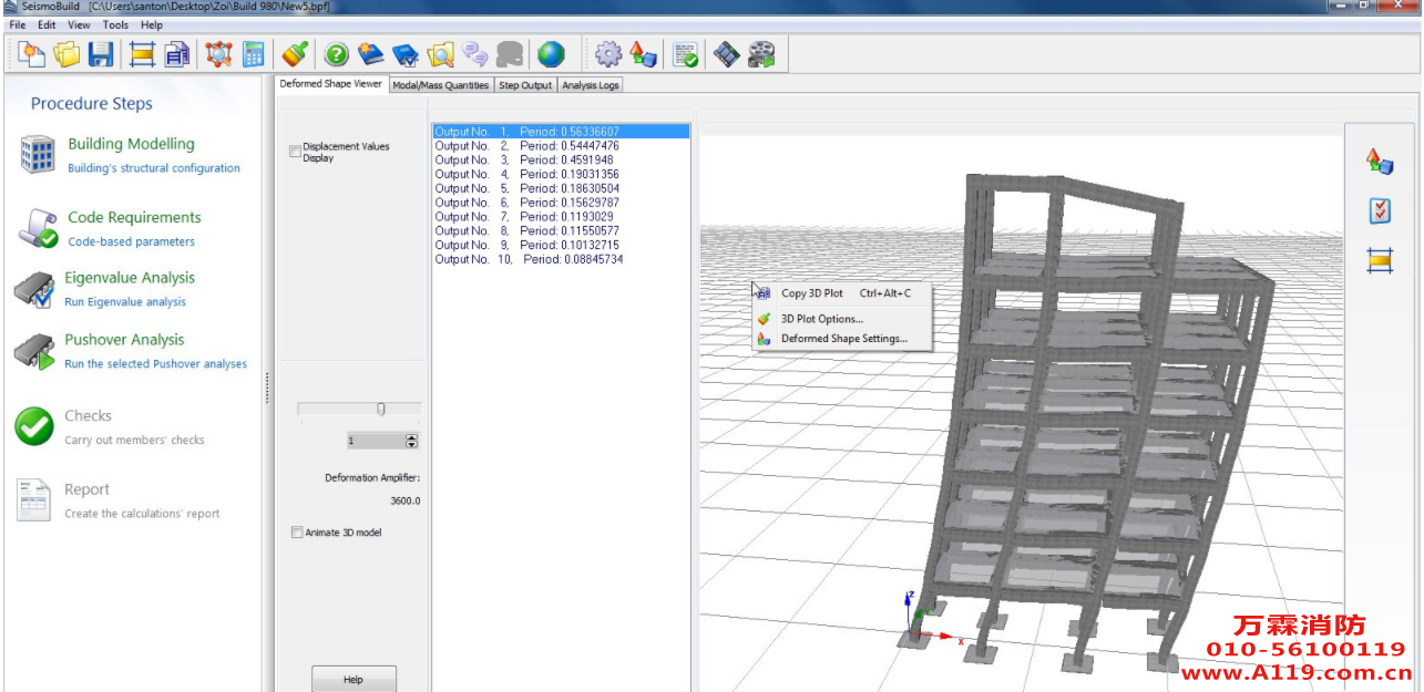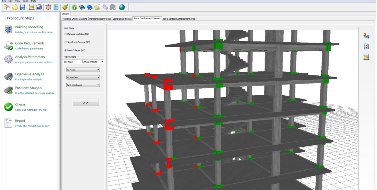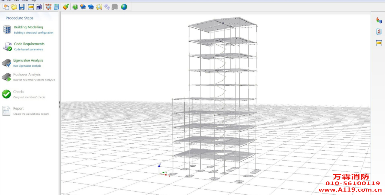 建筑模型 3D楼层视图 3D模型 玻璃钢和楼梯分配 不同的基础水平 显示有限元模型 代码要求 变形的形状查看器 变形的形状查看器 会员支票 接头检查 报表生成器 报告预览